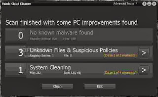 kolongtulis.blogspot.com - Panda Cloud Cleaner merupakan sebuah perangkat lunak anti-malware yang menggunakan teknologi cloud untuk mendeteksi dan membasmi ancaman apapun yang membahayakan sistem anda. Jadi kalau dengan teknologi cloud kalian harus dalam keadaan online untuk menggunakannya, karena database dari software ini tidak disimpan didalam komputer kalian, tetapi sudah ada server khusus yang menyimpan databasenya dan untuk mengaksesnya kita harus dalam keadaan online, kelebihan dari teknologi cloud adalah kalian tidak perlu repot-repot untuk melakukan update antivirus, setelah software ini selesai diinstall kalian bisa langsung menggunakannya asalkan dalam keadaan online. Tidak ada konfigurasi khusus didalam software ini, setelah software ini dijalankan maka secara otomatis akan memindai sistem anda.